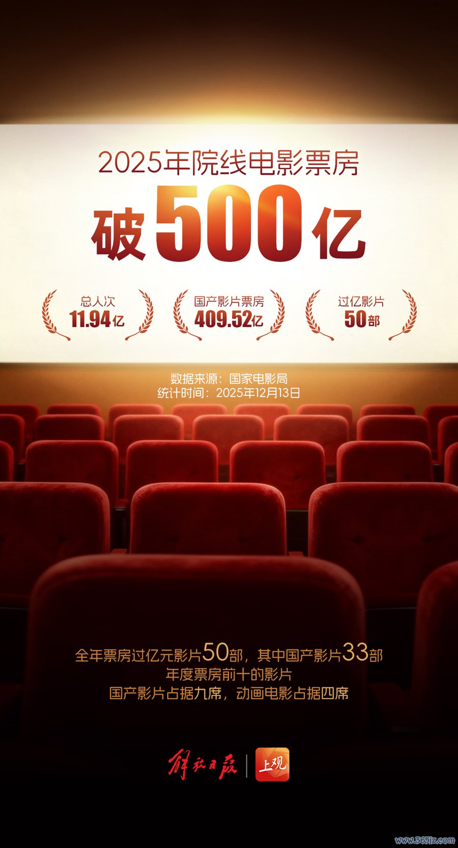 戒指12月13日下昼,2025年中国电影总票房龙套500亿元,比客岁全年总票房超出75亿元。